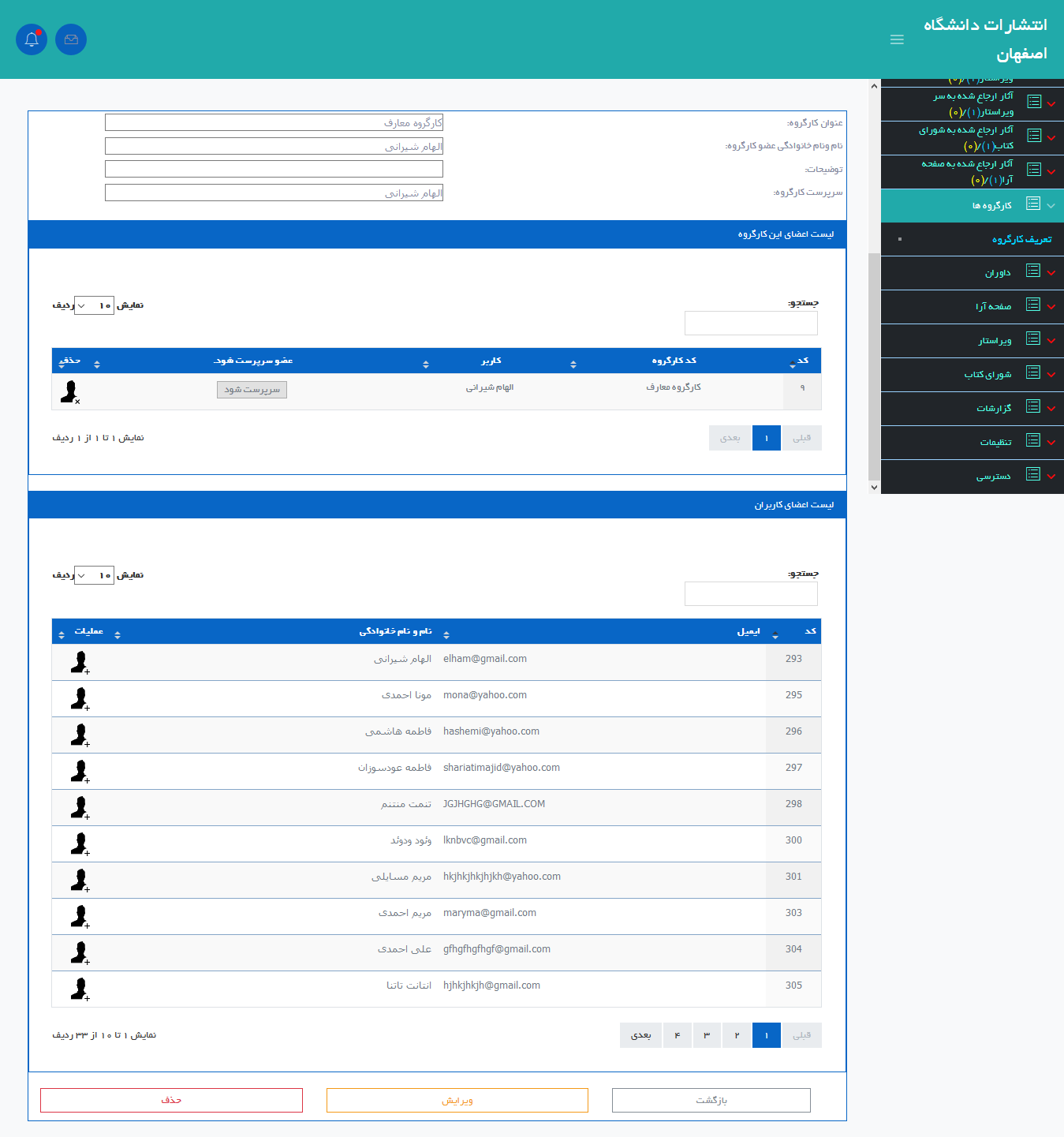 دراین قسمت افرادی که عضو کار گروه هستند قابل مشاهده هستند